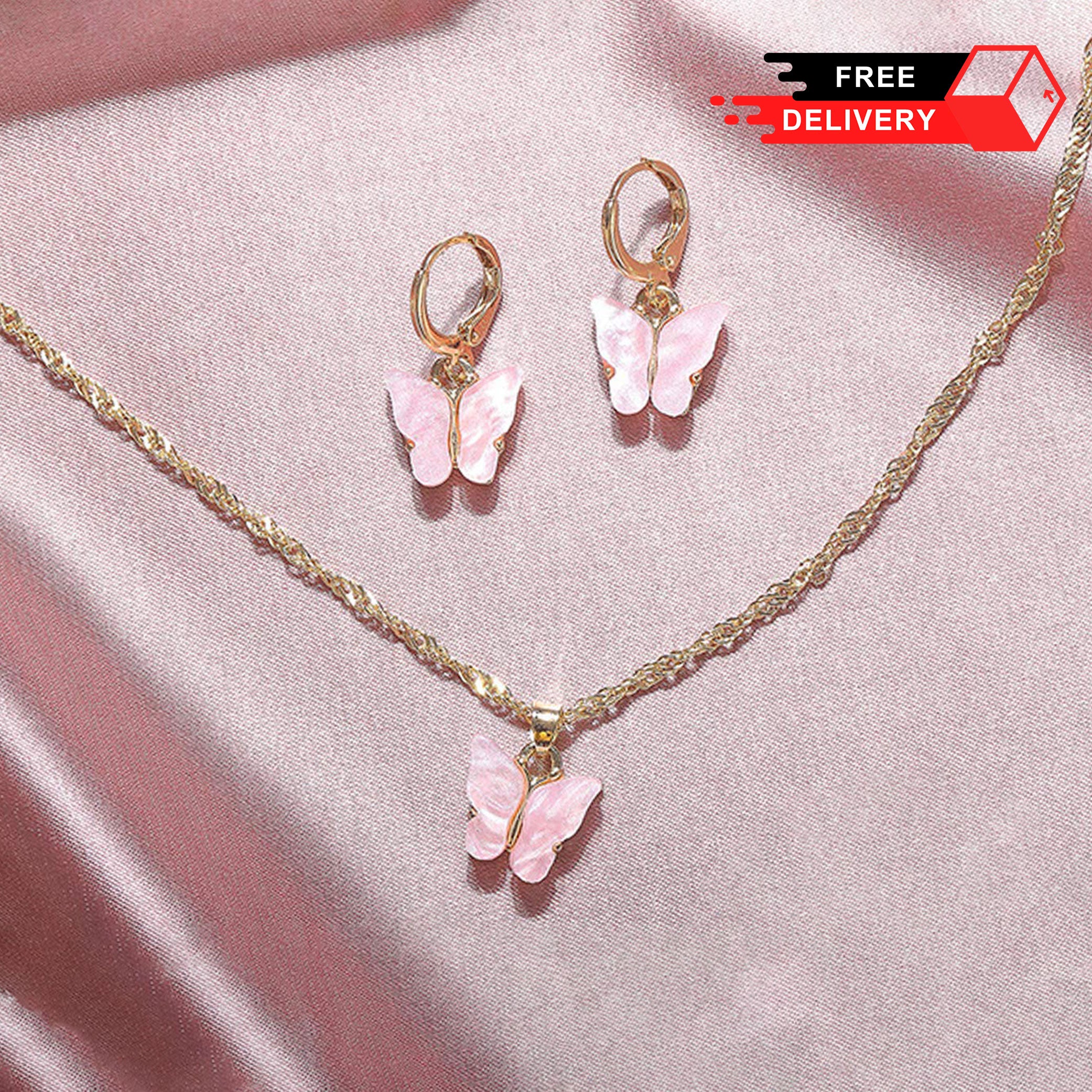 Complete your outfit with this elegant 2-piece jewelry set. Featuring an acrylic butterfly pendant necklace and a pair of acrylic butterfly earrings, this set is perfect for adding a touch of sophistication to any look. Made with high-quality materials, this set is durable and sure to last. Now you can effortlessly elevate your style with this versatile set that offers countless opportunities for accessorizing.